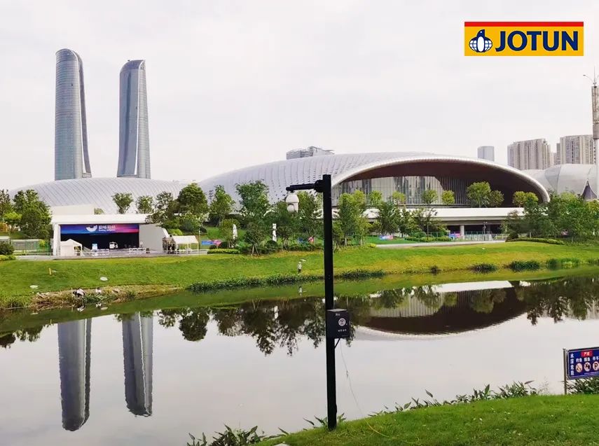 打破人們對于現(xiàn)代建筑冷冰冰的傳統(tǒng)理念,用獨特的月牙懸挑結構創(chuàng)造張力之美,以萬鈞鋼之重造就灞河之濱輕盈的月光之美。佐敦以豐富的鋼結構防腐涂刷業(yè)績和專業(yè)的防腐防火長效保護提案,被選定為9萬噸鋼結構的防腐防火涂料供應商,特選用佐敦膨脹型防火涂料與氟碳面漆組合,為2萬多噸的外露屋蓋鋼桁架保駕護航,實現(xiàn)“懸浮彎月”的建筑設計效果。