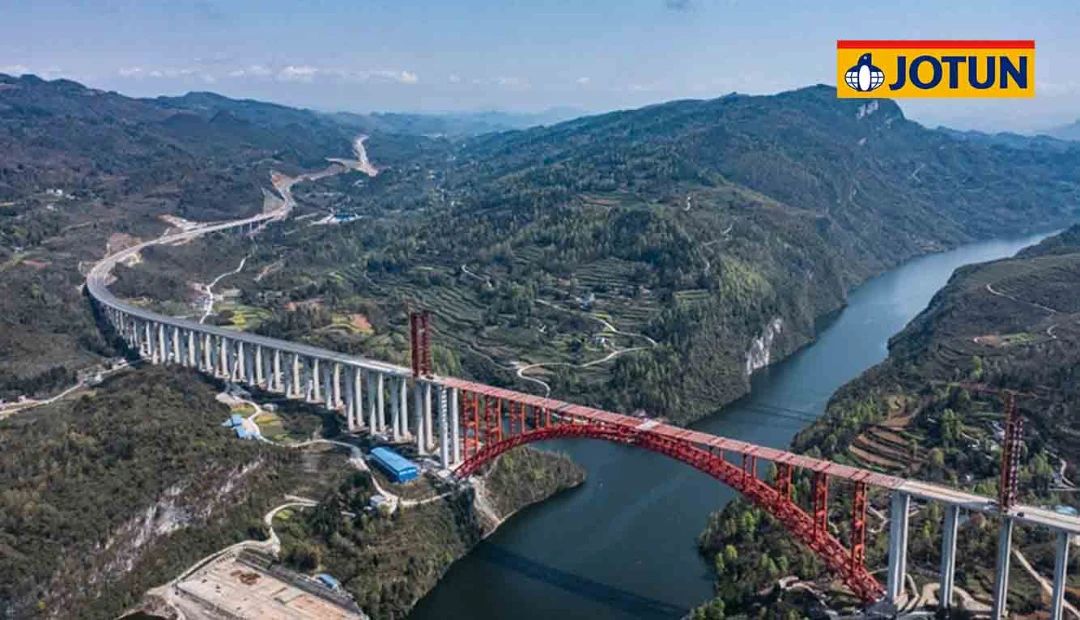 貴州德余高速烏江特大橋是貴州德江至余慶高速控制性工程,是目前世界最大跨徑上承式鋼管混凝土拱橋。2023年7月10日,德余高速烏江特大橋正式通車。大橋面漆采用佐敦丙烯酸聚硅氧烷產(chǎn)品。